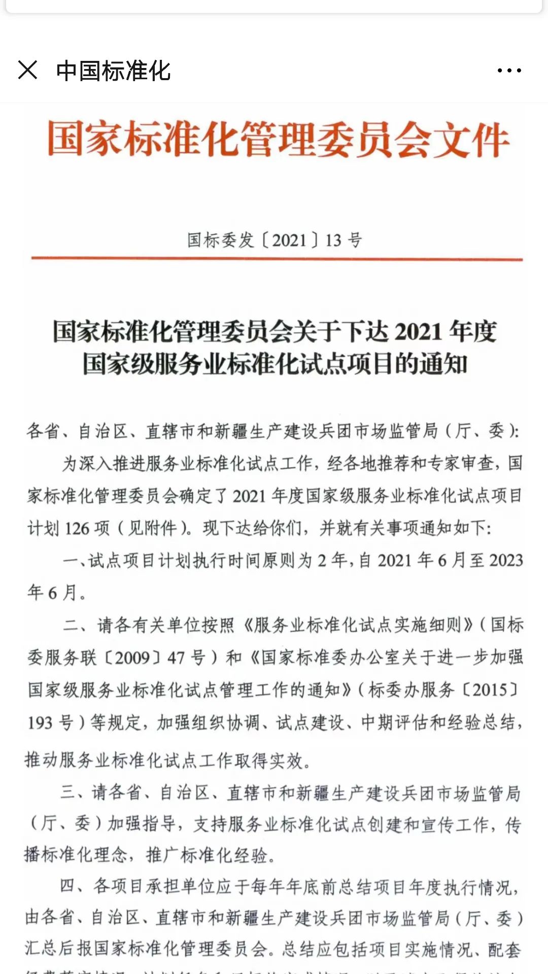 日前,《国家标准化管理委员会关于下达2021年度国家级服务业标准化试点项目的通知》正式发布。烟台高新区御花园老年养护中心承担的医养结合标准化服务试点成功入选,是本年度烟台市唯一一家入选企业,也是高新区首家获批国家级标准化试点项目。