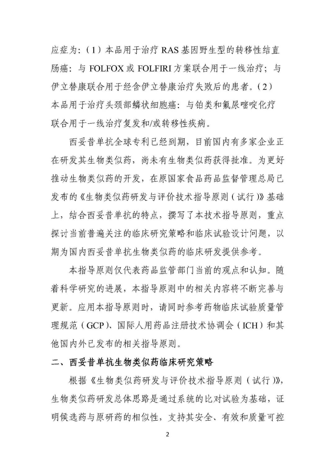 (1)本品用于治疗 RAS 基因野生型的转移性结直肠癌:与 FOLFOX 或 FOLFIRI 方案联合用于一线治疗;与伊立替康联合用于经含伊立替康治疗失败后的患者。