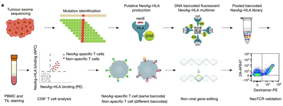 ▲自病患肿瘤分离可专一辨认肿瘤新抗原T细胞的流程(图片来源:参考资料[2])