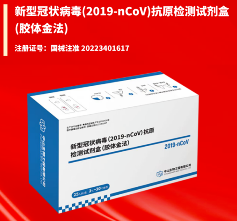 近日,经国家药监局审查,健康基地园区企业中山生物工程有限公司(以下简称“中山生物工程”)自主研制的新型冠状病毒(2019-nCoV)抗原检测试剂盒(胶体金法)产品获国家药监局批准上市,成为我市首个、全省第六个获得第三类医疗器械产品注册证的抗原检测试剂产品。