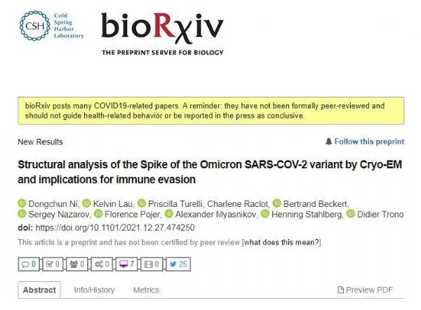 Dongchun Ni, Kelvin Lau, Priscilla Turelli, et al. Structural analysis of the Spike of the Omicron SARS-COV-2 variant by Cryo-EM and implications for immune evasion,bioRxiv(2021). DOI:10.1101/2021.12.27.474250
