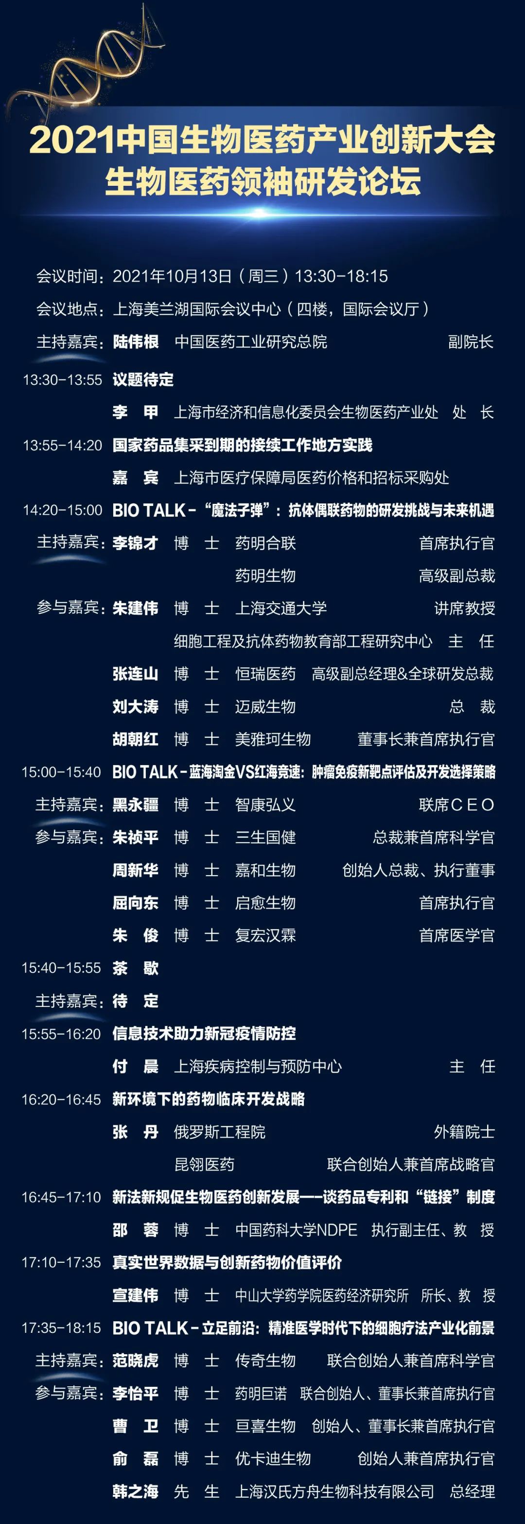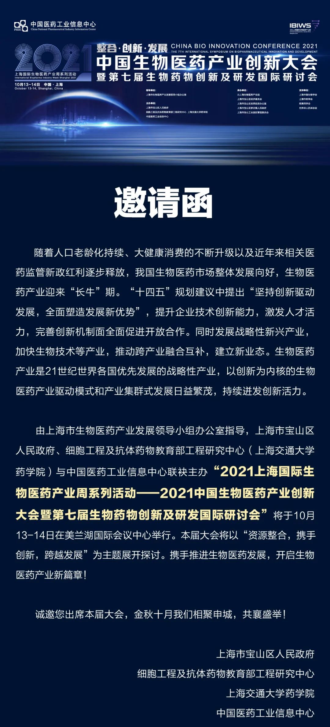 【开幕在即】2021年中国生物医药产业创新大会暨第七届生物药物创新及研发国际研讨会议程重磅放送!