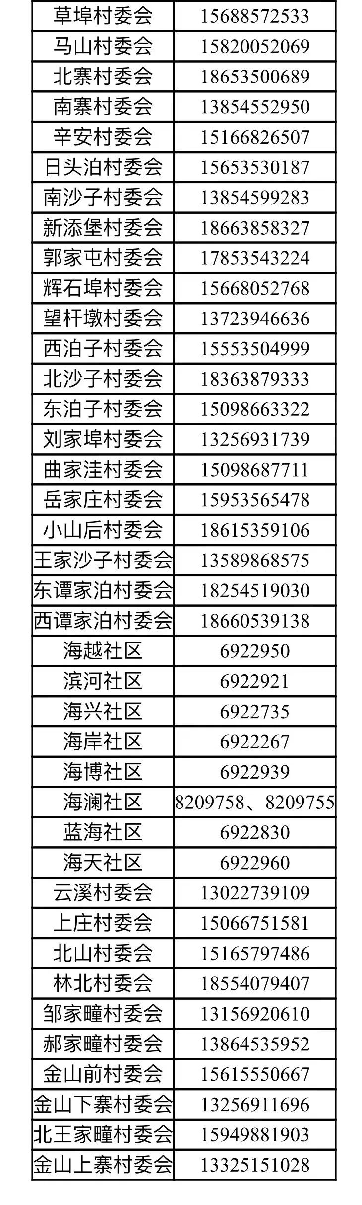 高新区各社区(村庄)报备、咨询联系方式: