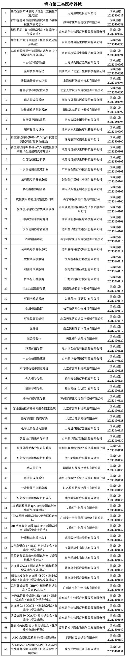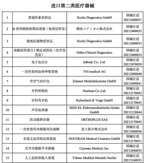2021年2月,国家药品监督管理局共批准注册医疗器械产品92个。其中,境内第三类医疗器械产品65个,进口第三类医疗器械产品11个,进口第二类医疗器械产品15个,港澳台医疗器械产品1个(具体产品见附件)。