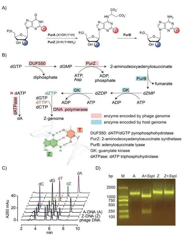 此次中国科学家找到了催化这一特殊DNA合成的多个酶,不仅涉及Z的合成,还包括A的消除。尽管DNA测序非常普及,但由于普通DNA测序手段并不能发现Z的存在,该团队利用酶水解DNA再进行组分分析的传统方法,证实了地球上广泛存在含这类特殊DNA的噬菌体,并用最新一代的纳米孔DNA测序技术,对结果进行了进一步验证。