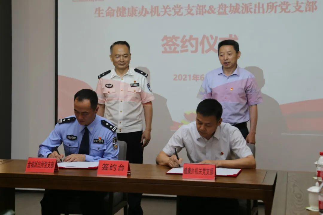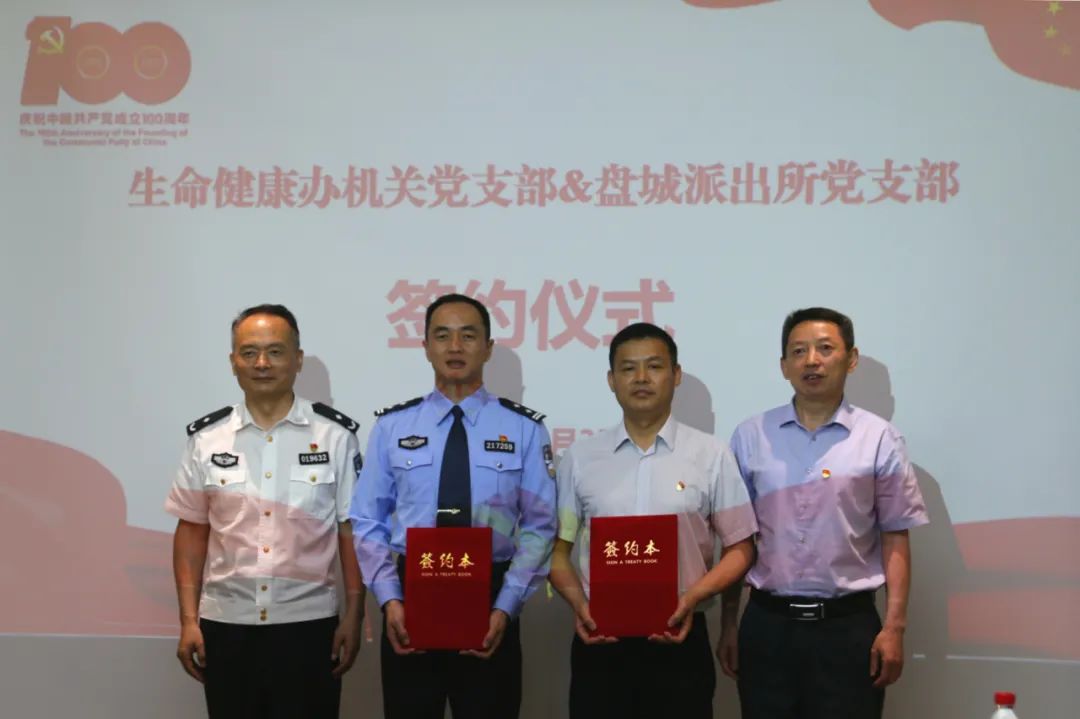 为加强与盘城派出所的党建共建工作,并以党建工作为引领促进双方的沟通合作交流,6月3日上午,生命健康办机关党支部与盘城派出所党支部开展党建共建活动并签署共建协议。生命健康党工委委员、管办副主任杨庭柱,江北新区公安分局党委委员、副局长杨斌,生命健康办机关党支部书记陆鼎铭,盘城派出所党支部书记王建刚以及双方党员代表参与活动。