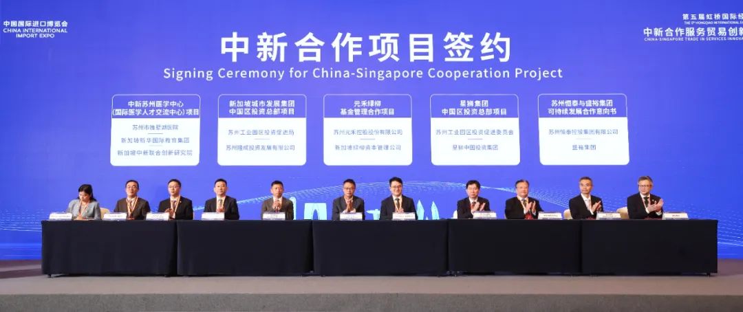 论坛开幕式上,一批中新合作、市域一体化、产业创新集群建设项目签约。随着元禾绿柳基金、星狮集团中国区投资总部、新加坡城市发展集团中国区投资总部、中新苏州医学中心等项目落地,中新合作领域进一步拓展。苏州自贸片区与苏州港太仓港区签订战略合作协议,将在人才交流、政策协同等方面深化合作。