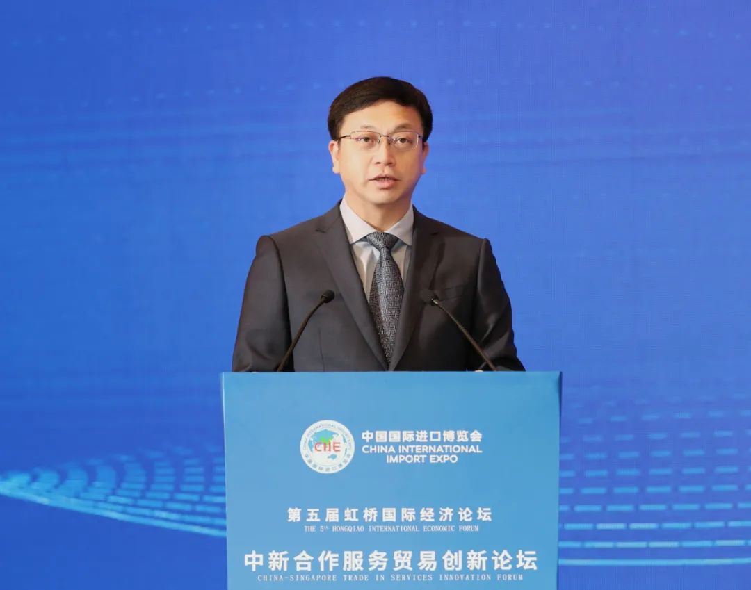 李飞在视频致辞中代表商务部对中新服贸论坛的举办表示祝贺。他说,中共二十大报告明确提出,要“创新服务贸易发展机制,发展数字贸易”。过去十年,中国服务贸易和数字贸易发展取得重大成就,服务贸易高水平开放、国际化合作不断迈出新步伐。新加坡是中国第三大服务贸易伙伴,也是中国在“一带一路”沿线最大的服务贸易伙伴。中国将充分发挥双边自贸协定、服务贸易合作机制等渠道作用,继续依托苏州工业园区等中新两国政府间合作项目,加快数字化发展、培育中新合作新增长点,打造重点项目、提升先行先试示范效应,持续推动中新服务贸易优势互补、合作共赢。