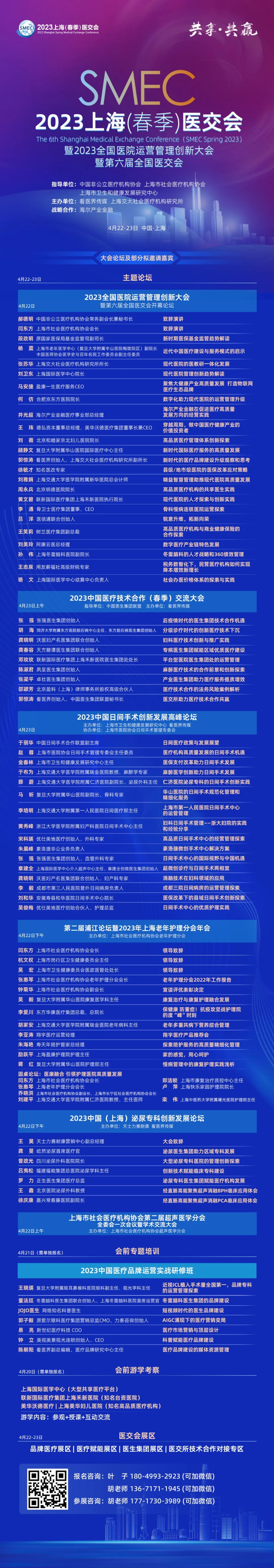 4月22-23日,由中国非公立医疗机构协会、上海市社会医疗机构协会、上海交大社会医疗机构研究所指导,看医界传媒举办的行业盛会2023上海(春季)医交会暨第六届全国医交会将在上海隆重举行。来自全国千余名医院院长、医疗投资和运营管理者,医生集团负责人、医疗赋能企业等业界精英将共聚一堂,把握医疗健康产业发展的脉搏、趋势和机遇,交流运营管理经验,探索合作共享共赢。欢迎参会交流!