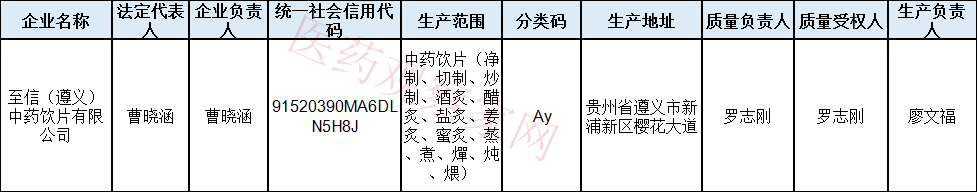 根据《中华人民共和国药品管理法》和《药品生产监督管理办法》(国家市场监督管理总局令第28号)的规定,贵州省药品监督管理局对至信(遵义)中药饮片有限公司提出的核发《药品生产许可证》申请进行了审查,公示期10天,请社会各界予以监督。