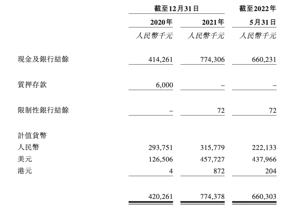 现金及银行结余由截至2020年12月31日的人民币414.3百万元增加至截至2021年12月31日的人民币774.3百万元,主要由于2021年收到融资所得款项的净影响,其部分被2021年的经营开支所抵销。截至2022年5月31日,现金及银行结余减少至人民币660.2百万元,主要是由于2022年并无股权融资,而经营活动持续产生现金支出。
