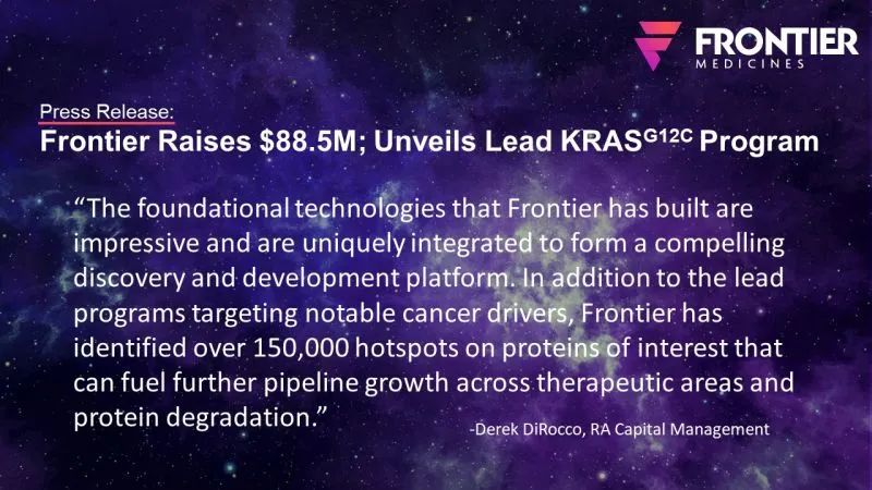 “Frontier 建立的基础技术令人印象深刻,并且经过独特整合,形成了一个引人注目的发现和开发平台。除了针对显着癌症驱动因素的主要项目外,Frontier 还确定了超过 150,000 个感兴趣蛋白质的热点,这些热点可以推动治疗领域和蛋白质降解的进一步管道增长。”