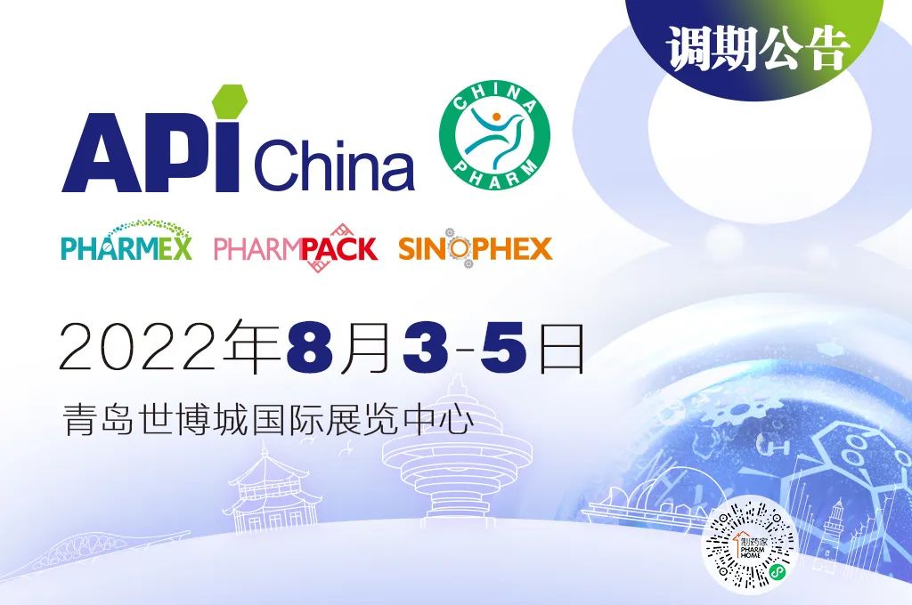 感谢您对“中国国际医药原料药/中间体/包装/设备交易会(以下简称API China)的关注与支持!鉴于近期国内各地新冠疫情的发展态势,依据疫情防控工作要求,为确保广大展商、观众和业内同仁的健康安全和参会效果,现将原定于2022年5月10日至12日在青岛世博城国际展览中心举办的“第88届中国国际医药原料药/中间体/包装/设备交易会”延期至2022年8月3日至5日举办,举办地点不变。同期,将举办第二十六届中国国际医药(工业)展览会暨技术交流会(以下简称CHINA-PHARM)。