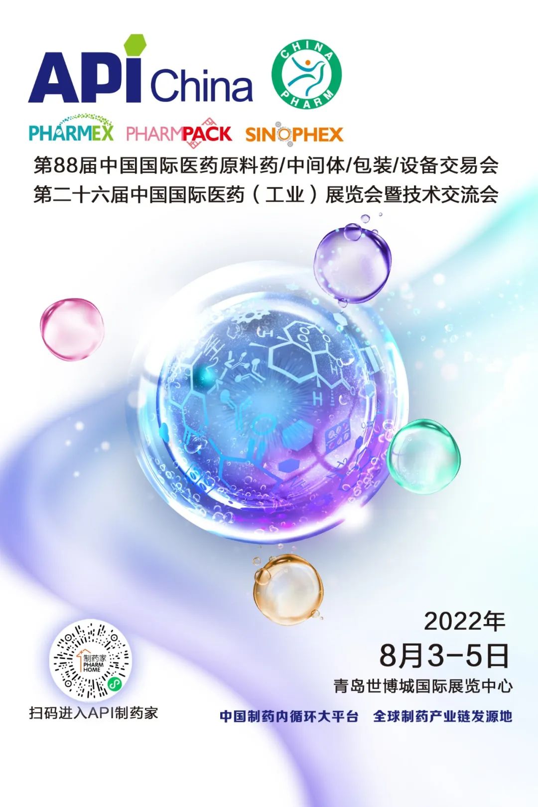 第88届中国国际医药原料药/中间体/包装/设备交易会(API China)及第二十六届中国国际医药(工业)展览会暨技术交流会(CHINA-PHARM)于2022年8月3-5日,在青岛世博城国际展览中心举办。展会同期将举办第二届中国医药CXO大会及近30余场精彩会议,期待与您的再次相聚!