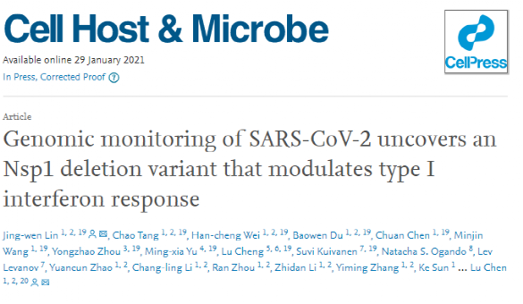 四川大学华西医院实验医学科报导了一种具有重要临床意义的新冠病毒Nsp1(Δ500-532)突变株,并从分子病毒、分子流行病和临床表现角度阐述了该突变株的特征。研究成果发表在《Cell Host & Microbe》(IF 15.7)。