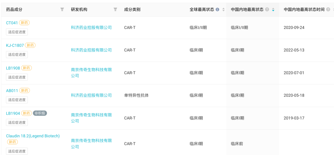科济药业和传奇生物进入临床阶段靶向 CLDN18.2 产品
