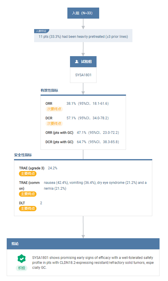 结果显示,SYSA-1801 在复发/难治性 CLDN18.2 阳性实体瘤中表现出了值得期待的早期疗效信号,同时安全可耐受。