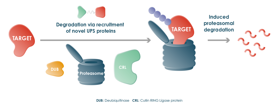 目前,靶向蛋白质降解技术在药物研发领域应用较热,其作用机制是利用泛素 - 蛋白酶体系统(UPS)来诱导特定蛋白进行降解。