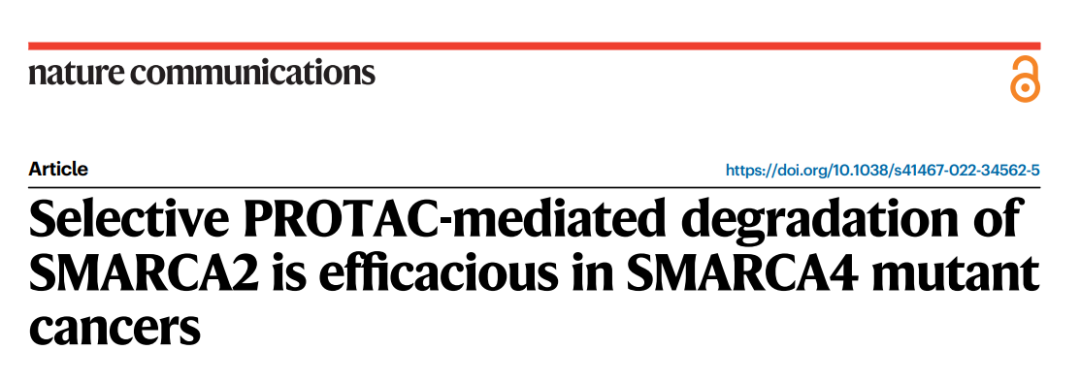 [1] Cantley, Jennifer et al. “Selective PROTAC-mediated degradation of SMARCA2 is efficacious in SMARCA4 mutant cancers.” Nature communications vol. 13,1 6814. 10 Nov. 2022, doi:10.1038/s41467-022-34562-5