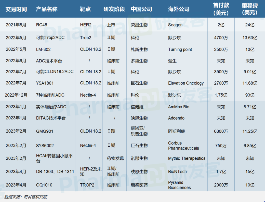 在国外人群中取得的早期积极临床数据,也让国内公司开发的ADC产品获得外企青睐显得顺理成章。