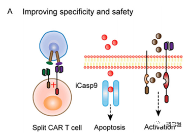 随后,一些研究提出了另一种抑制T细胞功能的方法,如果该毒性反应是通过工程自杀基因或使用抗体介导的杀伤而发生的,也称为非开关CAR T细胞[20,21]。