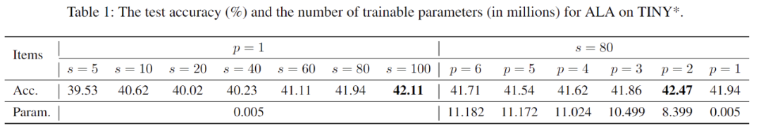 作者在实际(practical)数据异质环境下的 Tiny-ImageNet 数据集上用 ResNet-18 进行了对超参数 s 和 p 的对 FedALA 影响的研究,如表 1 所示。对于 s 来说,采用越多的随机采样的本地训练数据用于 ALA 模块学习可以使个性化模型表现更好,但也同时增加了计算代价。在使用 ALA 的过程中,可以根据每个客户机的计算能力调整 s 的大小。从表中可以得知,即使使用极小的 s(如 s=5),FedALA 依旧具有杰出的表现。对于 p 来说,不同的 p 值对个性化模型的表现几乎没有影响,在计算代价方面却有着巨大的差别。这一现象也从一个侧面展示了 FedRep 等方法,将模型分割后保留靠近输出的神经网络层在客户机不上传的做法的有效性。使用 ALA 时,我们可以采用较小且合适的 p 值,在保证个性化模型表现能力的情况下,进一步降低计算代价。