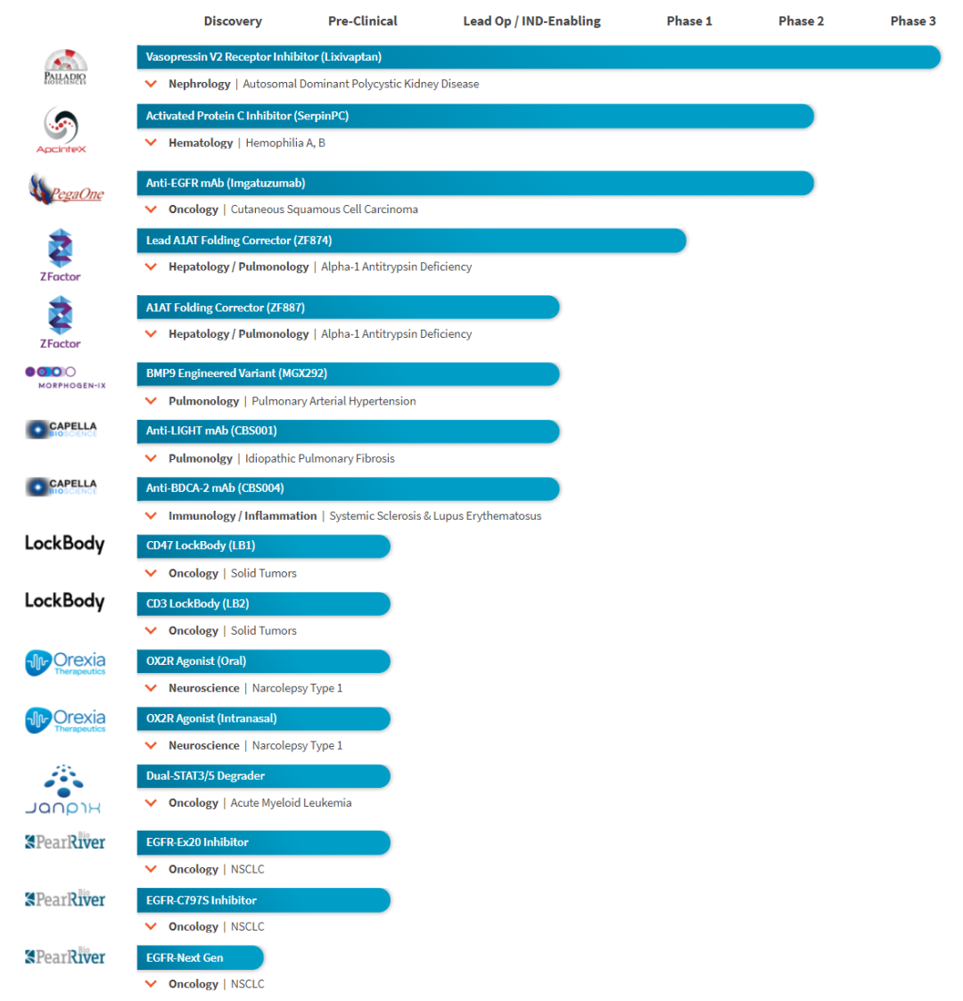 肾脏病、血液学、肿瘤学、肝病学、肺病、免疫学、炎症和神经科学等领域拥有 16 个管线,