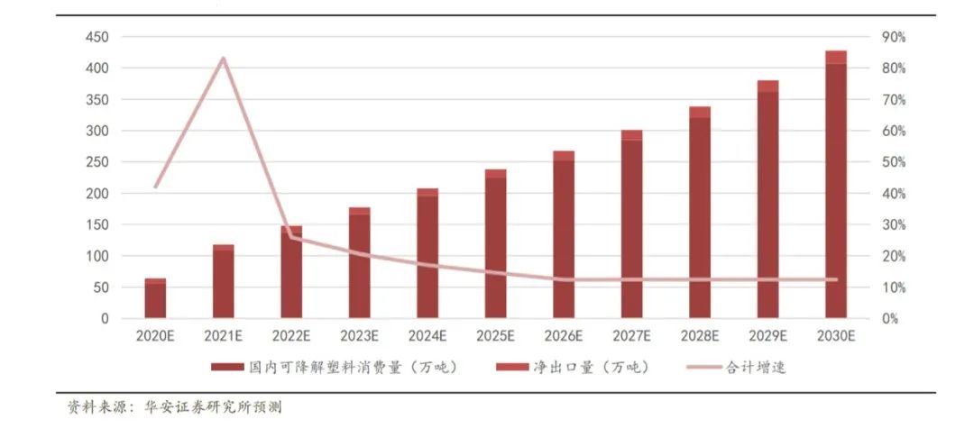 图丨中国可降解塑料需求量预测(来源:华安证券研究所)
