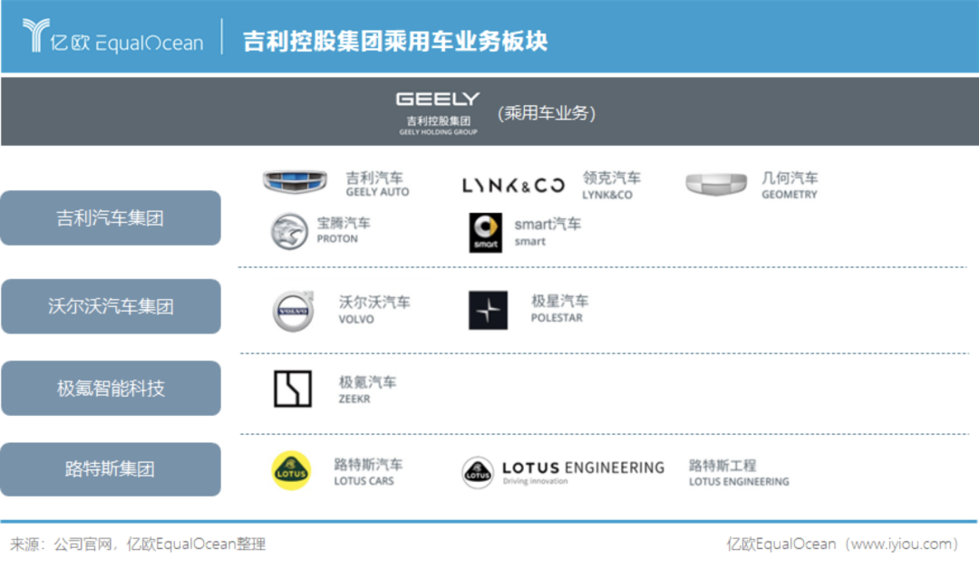 目前,吉利控股集团由吉利汽车集团、沃尔沃汽车集团、吉利科技集团、吉利新能源商用车集团、铭泰集团和吉利人才发展集团6大核心子集团组成,业务上又可以横向细分为乘用车业务、商用车业务、科技、出行、汽车运动、金融与数字科技以及教育7大业务模块。