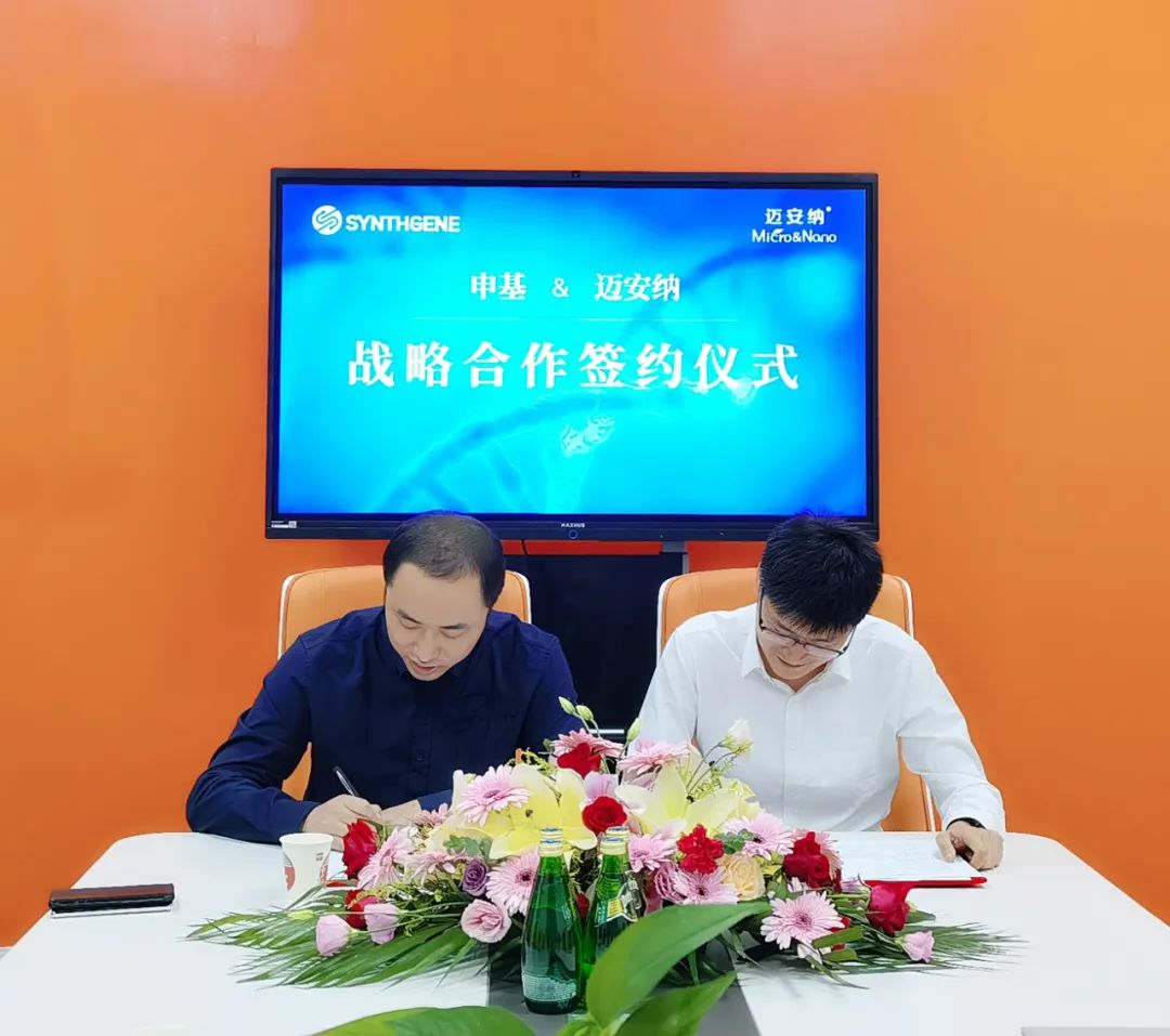 2022年9月22日,国内领先的mRNA原料供应商江苏申基生物科技有限公司(以下简称“申基生物”)和核酸纳米药物递送国产整体解决方案的领军企业迈安纳(上海)仪器科技有限公司(以下简称“迈安纳”)在迈安纳上海总部签署了双方的战略合作协议。未来双方就核酸药物领域达成深度战略合作,共同助力国内核酸药物产业化发展