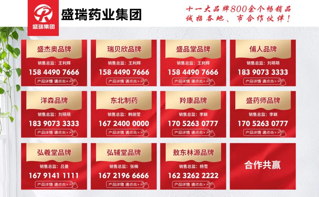 盛瑞药业持有盛杰奥、瑞贝欣、俌人、盛品堂、洋森五大品牌。2020年牵手东北制药组建了新的营销中心,六大品牌相辅相成,完善了集团公司的产品结构和销售网络。