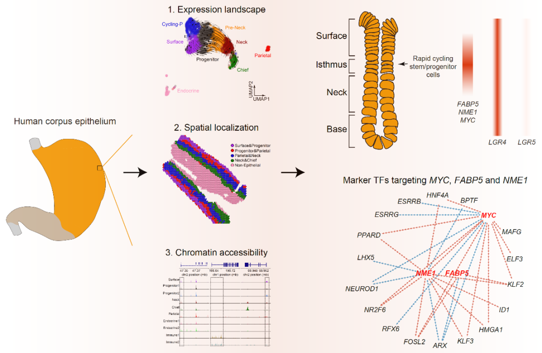 该研究在单细胞分辨率系统地揭示了人类胃体上皮细胞的基因表达特征和表观遗传学调控特征,鉴定了胃上皮干/组细胞的重要调控基因FABP5和NME1,确认了EGF和WNT信号通路对于维持胃上皮干/组细胞的重要功能,为未来相关疾病特别是胃癌的诊断和治疗提供了潜在的帮助。