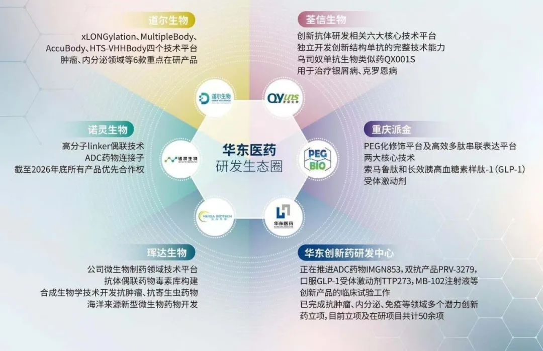 如今,华东医药已实现ADC技术、多靶点技术、纳米抗体高通量发现和改造、肿瘤精准治疗等多项专利技术平台的搭建,这对于打通华东医药创新药发现、筛选和优化、临床研究的产业链生态圈具有重要的战略意义,后续通过对公司创新药研发生态圈资源的整合运营,将使华东医药在大分子药物领域源头创新能力得到迅速提升。
