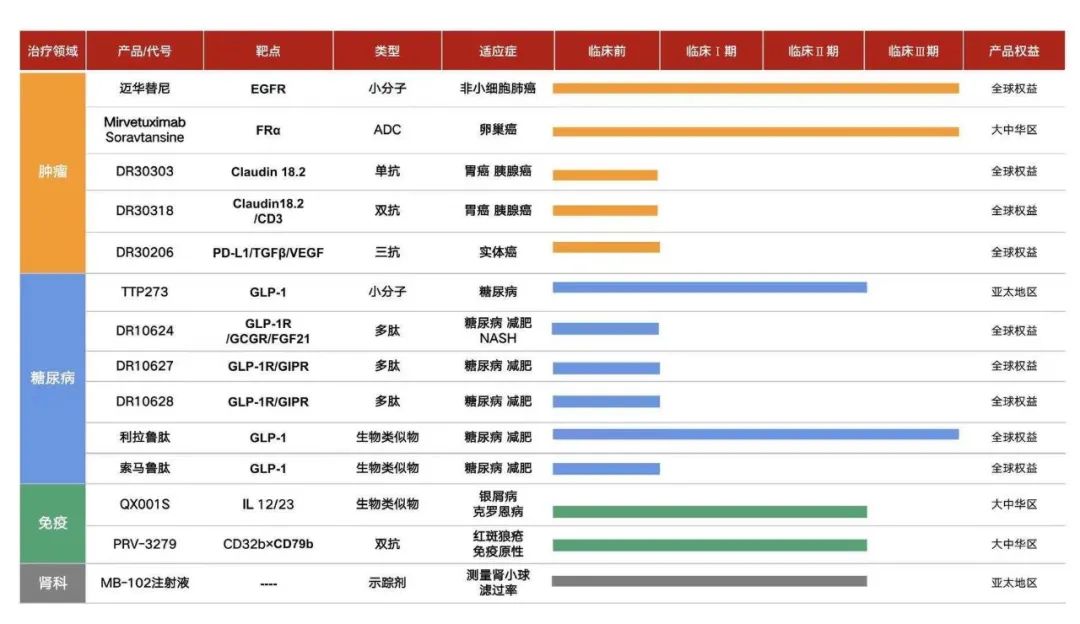 华东医药收购收购道尔生物,最直接的效果就是获得了6款创新药项目,其中不乏具有first in class潜力的产品,直接壮大了自身的创新产品管线阵营。由道尔生物官网披露的产品管线来看,这6款产品主要分布在肿瘤、内分泌领域,刚好契合华东医药专注布局的业务战略方向,自然就具有非常好的协同性。