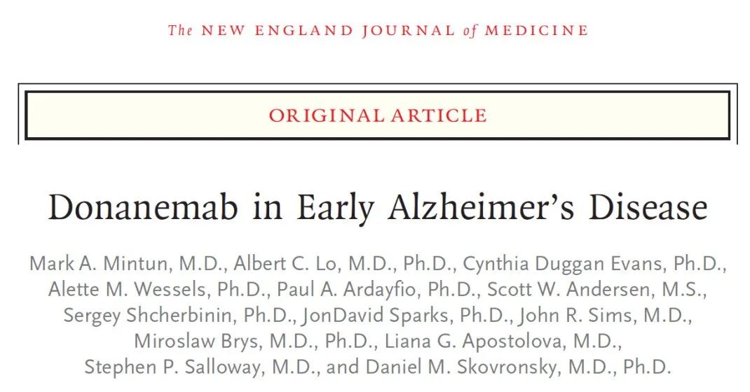 2021年3月13日,礼来公司在国际顶级期刊《新英格兰医学杂志》 NEJM 发表了一篇题为"Donanemab in Early Alzheimer’s Disease"的2期临床试验论文。