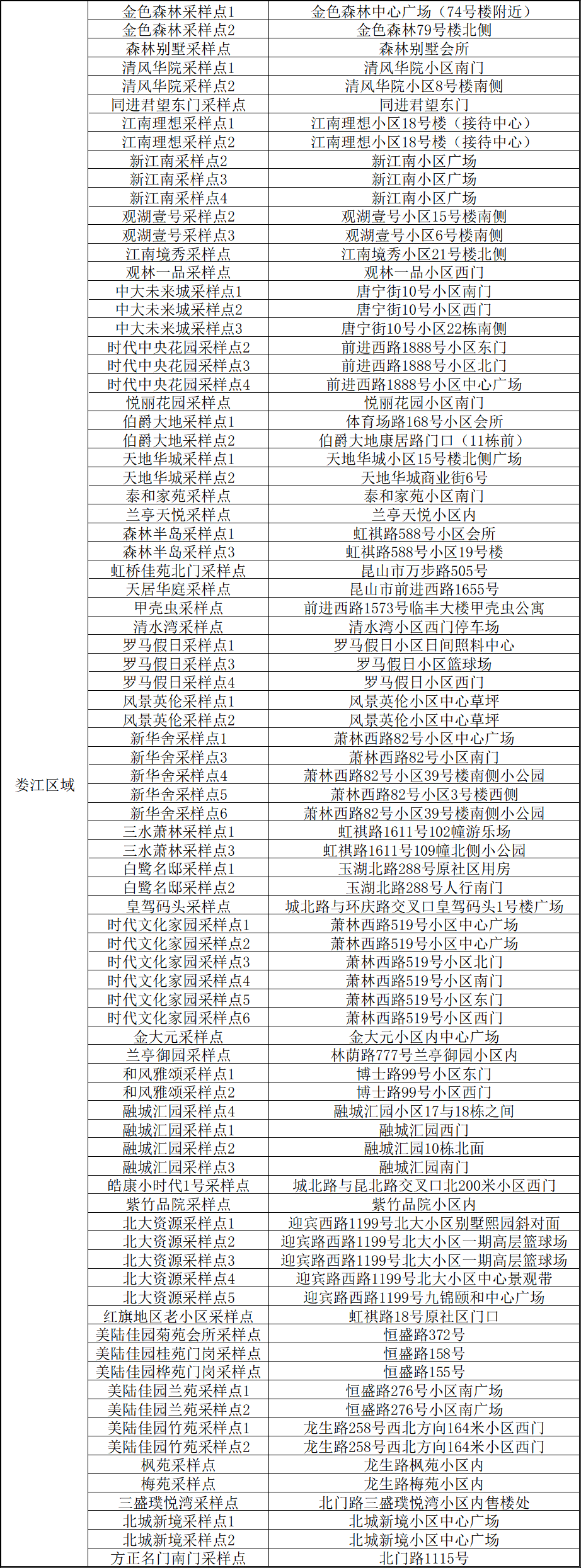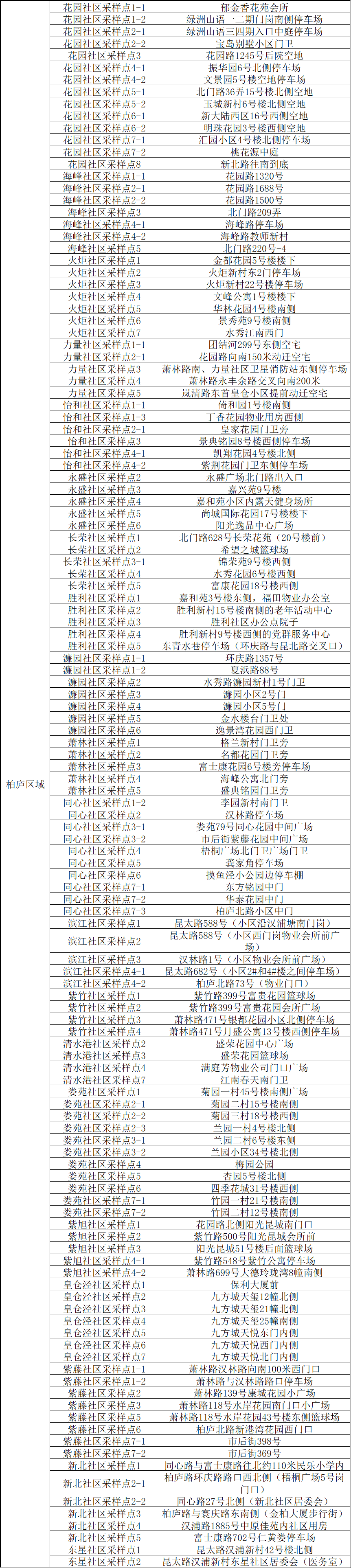 核酸检测采样点位明细