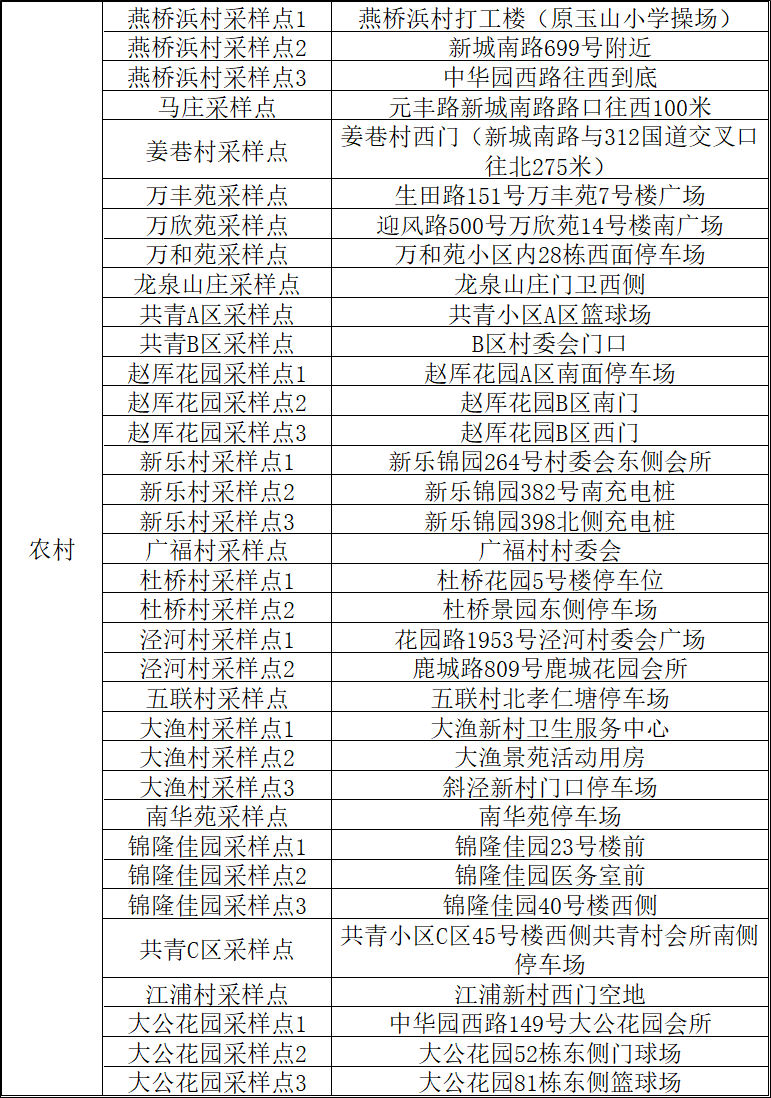 备注:具体采样时间段以各村(社区)、企业通知为准。