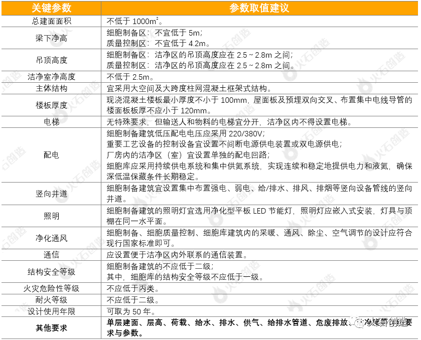 表2:细胞制备中心产业空间关键建筑参数(部分)