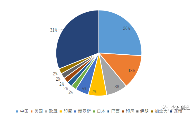 。随着经济的发展,对于化石燃料的需求仍旧较大,总体的碳排放量与日俱增,2019 年全球碳排放总量达 341.69 亿吨。