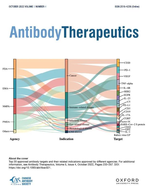 在本综述中,我们参考 Umabs 治疗性抗体数据库 (Umabs-DB) 的数据,对全球范围内至少被一家药品监管机构批准的抗体(不包括生物类似药、诊断抗体和兽用抗体)进行统计分析。本文首先统计了不同地区药品监管机构逐年批准的抗体药物的情况,了解不同地区抗体药物获批的趋势。然后,本文进一步分析不同年份获批抗体的格式,深入了解了不同抗体格式以及抗体改造技术的演化和发展。此外,本文还讨论了抗体药物的靶点和疾病,展示了全球抗体药物研发的进展。最后,不同国家和地区抗体研发的机构也进行了分析,以此预测抗体疗法未来的发展趋势。