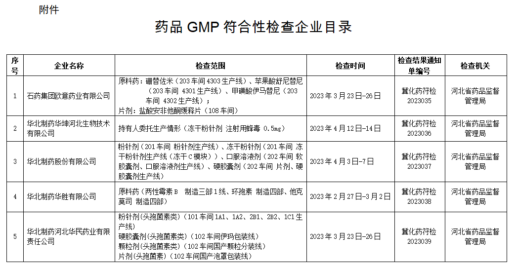 8. 河北省药品监督管理局:2023年化药第9号药品GMP符合性检查结果通告