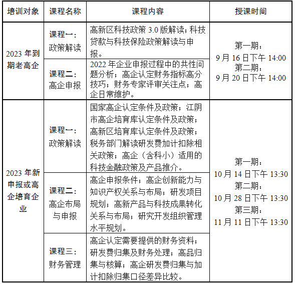 2、新申报或高企培育企业:2022年10月~11月,共3期(每期3节课)