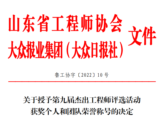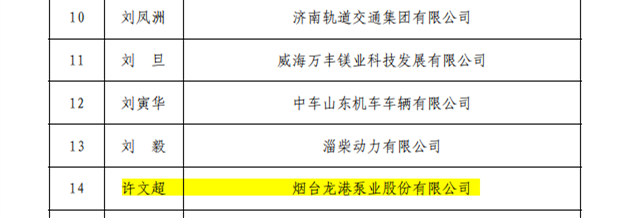 近日,由山东省工程师协会和大众报业集团(大众日报社)联合举办的山东省第九届杰出工程师评选结果揭晓,烟台高新区推荐的烟台龙港泵业股份有限公司许文超荣获“山东省杰出工程师”荣誉称号。