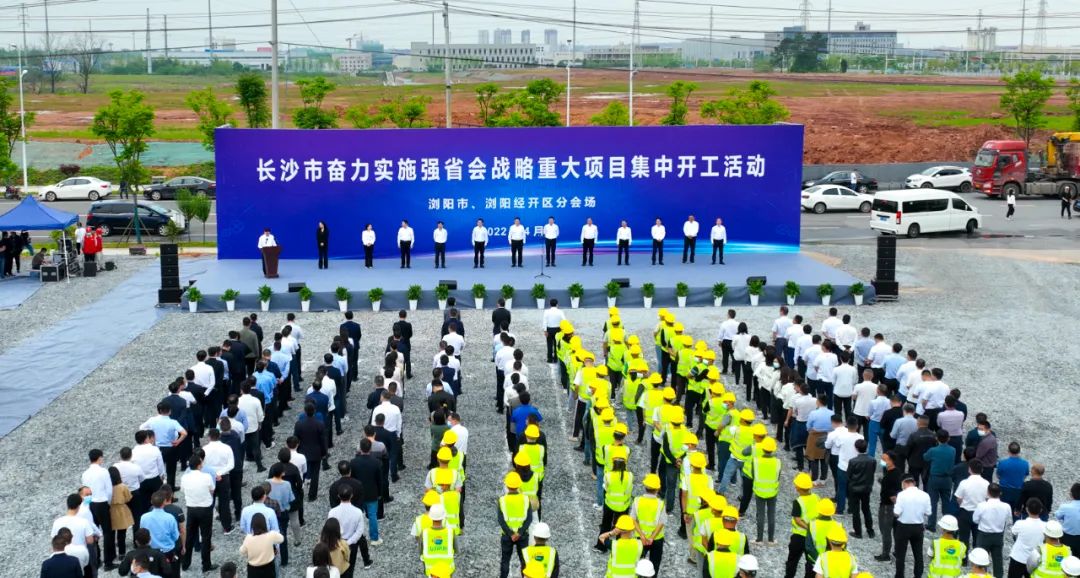 长沙市委常委、浏阳市委书记、浏阳经开区党工委第一书记朱东铁宣布开工。浏阳市委副书记、市长王雄文讲话,浏阳市委副书记、统战部部长戴武明主持活动,园区党工委副书记、管委会主任喻辉致辞,浏阳市领导邱山东、秦跃平、王坤球、冯赛军、李翔、邓雪琴、陈清、刘来宏、吕立生,委领导何六生、肖赛男、唐建国出席活动。
