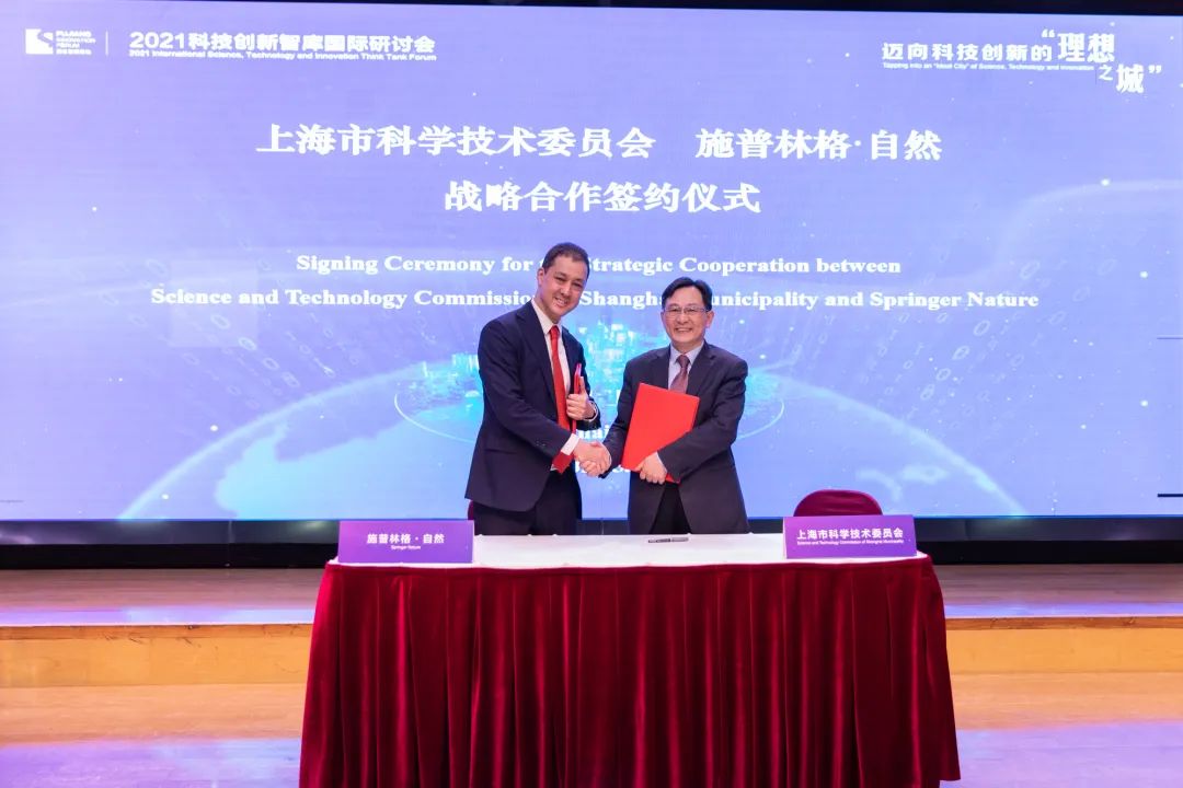 5月7-8日,“浦江创新论坛——2021科技创新智库国际研讨会”在上海举行。会上,上海市科委与施普林格•自然集团(Springer Nature )续签战略合作谅解备忘录。