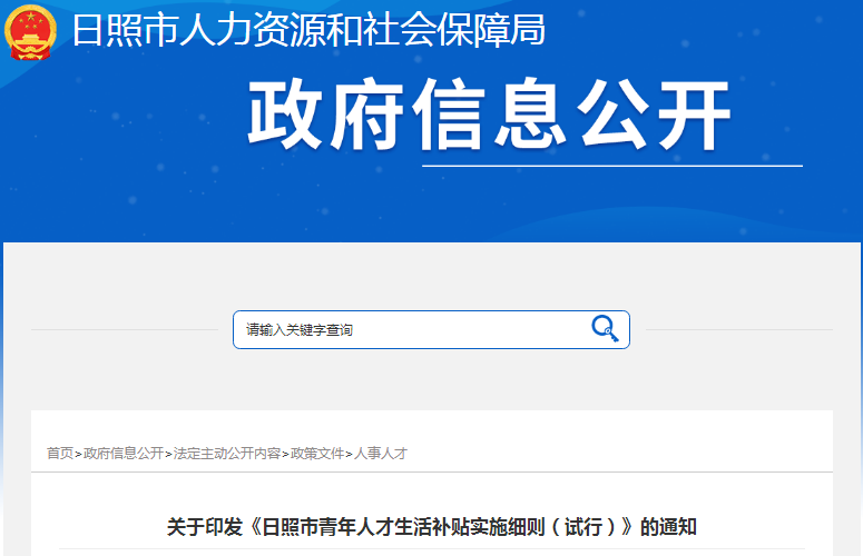 关于印发《日照市青年人才生活补贴实施细则(试行)》的通知
