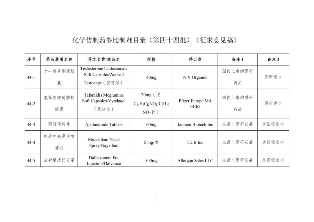 根据国家局2019年3月28日发布的《关于发布化学仿制药参比制剂遴选与确定程序的公告》(2019年第25号),我中心组织遴选了第四十四批参比制剂(见附件),现予以公示征求意见。