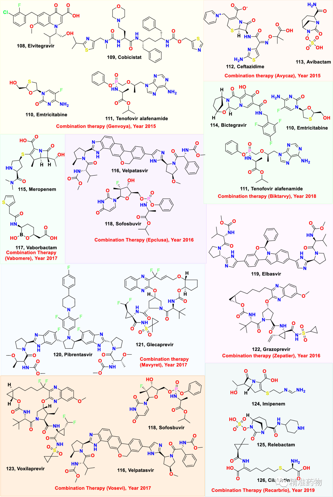 图7 FDA批准用于联合治疗的小分子抗感染药物的化学结构(第2部分)(2015-2020/6)