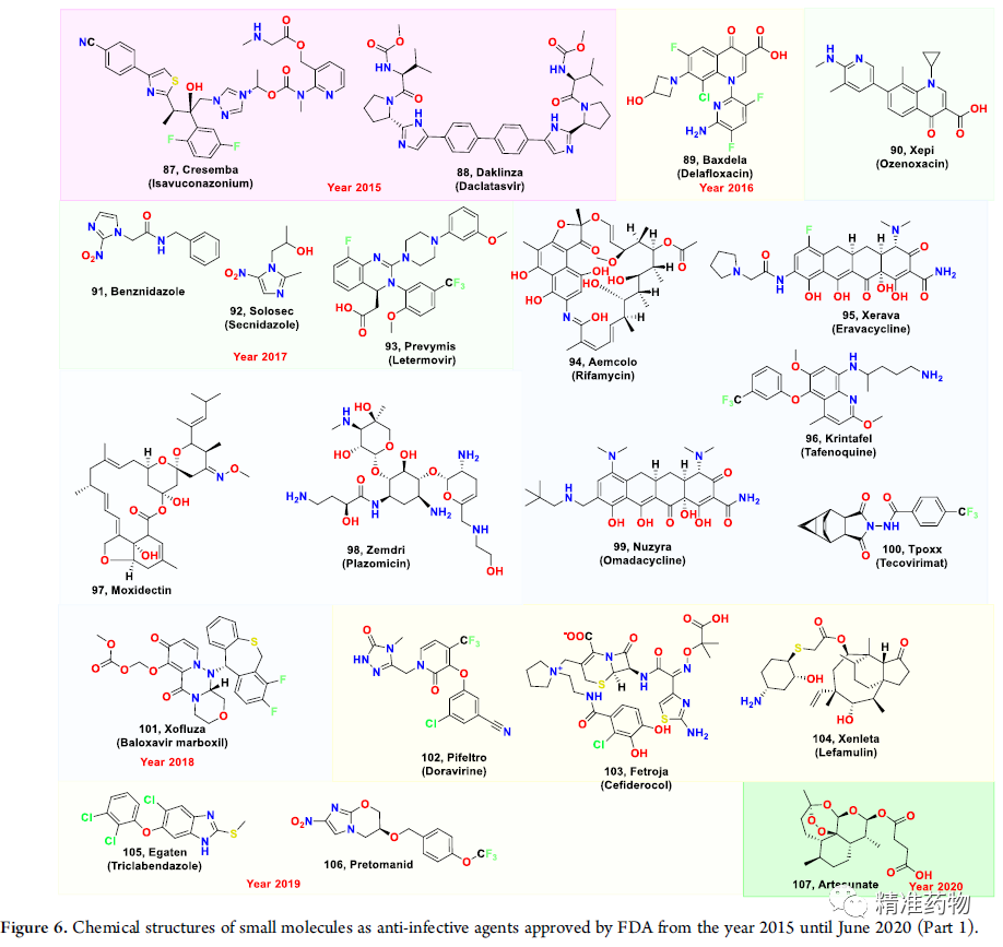图6 FDA批准的小分子抗感染药物的化学结构(第1部分)(2015-2020/6)