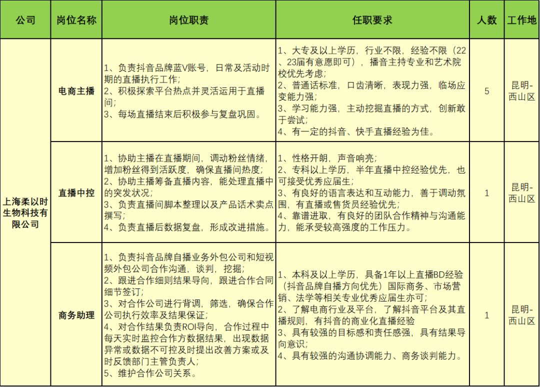 简历接收邮箱:kmljyyhr@126.com(邮件主题为“姓名”+“岗位”+“学校及专业”)